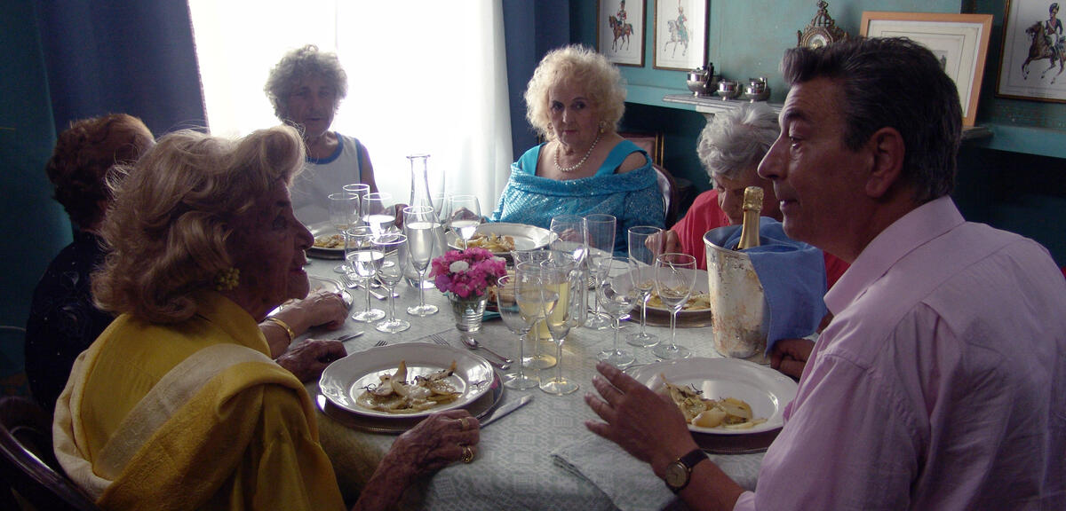 Ein Mann mit vier italienischen Frauen? Das klingt erst einmal gar nicht so schlecht. Nur dass die vier Grazien in Das Festmahl im August das Alter der halterlosen Strümpfe längst überschritten haben und sich nun nur noch den “lauten” Seiten der Weiblichkeit widmen: essen, keifen, streiten und nörgeln. Mitten drin steckt das leicht versoffene Muttersöhnchen Gianni (Gianni Di Gregorio, der auch Regie führte), kocht, umsorgt, flippt aus und verzweifelt. Denn seine Mutter, die Mutter des Nachbarn, die Tante des Nachbarn und die Mutter eines befreundeten Arztes landen allesamt für einen Tag in seiner Obhut.